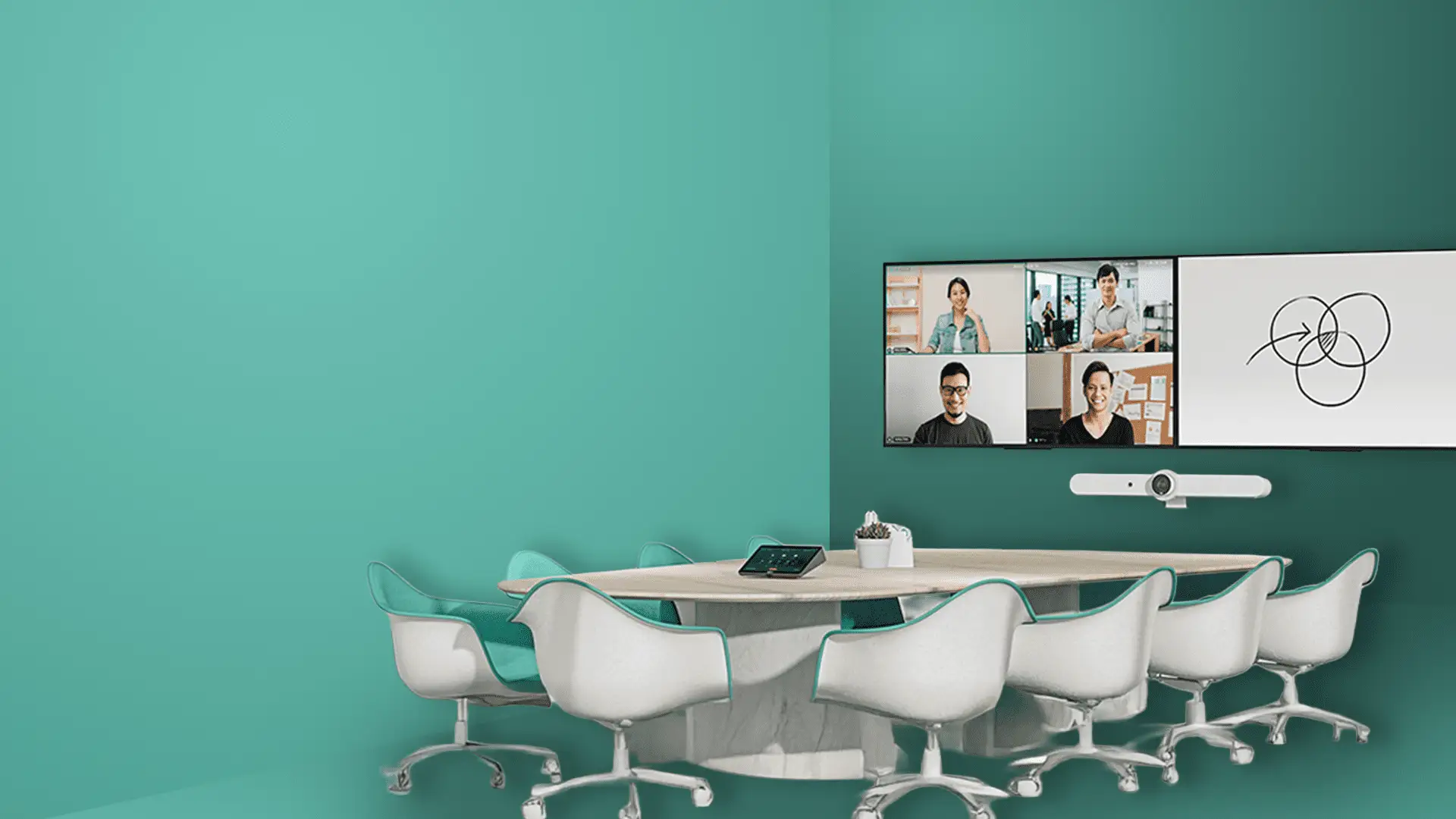 A modern conference room combines several technologies into a stable overall solution.