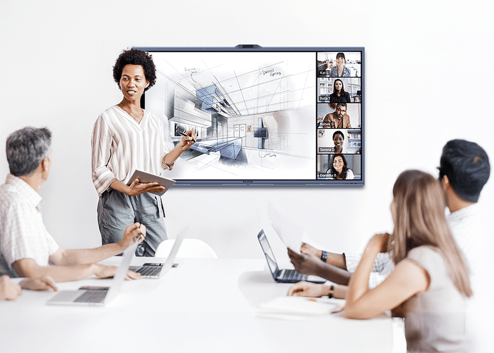 Einsatzbereich: Optimiert für mittelgroße Konferenzräume und kreative Workshops, bei denen eine aktive Zusammenarbeit am Display und eine intuitive Bedienung für Gäste erforderlich sind.
